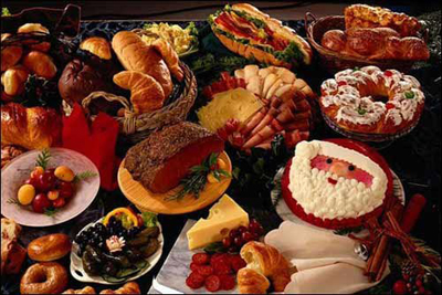 相傳,傳統(tǒng)圣誕大餐火雞就源于美洲,而在感恩節(jié)和圣誕節(jié)這兩個(gè)大日子,火雞更是不可缺少的傳統(tǒng)食品。在美國(guó),圣誕晚餐中還有一樣特別的食品——烤熟的玉米粥,上面有一層奶油,并放一些果料,香甜可口,別有滋味。有的還習(xí)慣在圣誕晚宴的餐桌上擺一只烤乳豬,英美等國(guó)人們還往往喜歡在豬的嘴里放一只蘋果,據(jù)說(shuō)這個(gè)習(xí)慣源于一些大家庭,因?yàn)橹挥写蠹彝ゲ庞锌赡艹缘昧艘活^豬,后來(lái)一些講究排場(chǎng)的人在圣誕請(qǐng)客時(shí)便紛紛效仿。