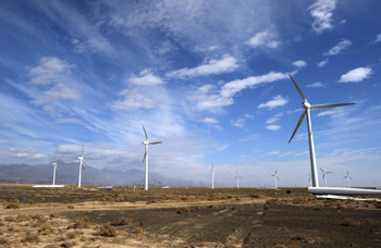 新疆達(dá)坂城風(fēng)區(qū)的風(fēng)力發(fā)電機(jī)群 記者 王菲