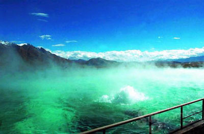 地殼運動造就了世界屋脊,同樣也造就了最火爆的地?zé)豳Y源。羊八井位于拉薩西北方,西藏念青唐古拉山下的盆地內(nèi),占地面積約15平方公里。兩側(cè)是高聳入云的皚皚雪山、冰川,中間盆地則是一汪汪火熱的溫泉。不遠(yuǎn)萬里來這里“享!钡,沒有人失望而歸。