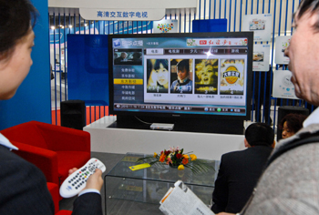 2010年11月19日第五屆文博會(huì)上,一位參觀的觀眾向展臺(tái)工作人員詢(xún)問(wèn)高清機(jī)頂盒的點(diǎn)播功能。借助三網(wǎng)融合、IPTV等技術(shù),電視觀眾將改變以往被動(dòng)接受的收視習(xí)慣,進(jìn)入到想看什么點(diǎn)什么的互動(dòng)點(diǎn)播時(shí)代。記者