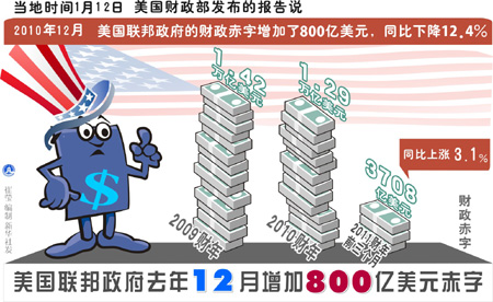 美國聯(lián)邦政府去年12月增加800億美元赤字