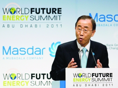 1月17日,聯(lián)合國秘書長潘基文在阿布扎比舉行的世界未來能源峰會上發(fā)表演講。 當天,世界未來能源峰會第四屆年會在阿聯(lián)酋首都阿布扎比國家展覽中心開幕。世界未來能源峰會被認為是全球再生能源國際合作重要平臺之一,目的是在再生能源領(lǐng)域?qū)で笙嚓P(guān)政策、鼓勵發(fā)明創(chuàng)新、加大投資力度。