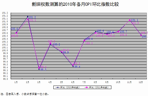 一是利用2011年新的權(quán)數(shù)構(gòu)成和2010年已發(fā)布的CPI八大類別價格指數(shù),對2010年各月的環(huán)比和同比價格總指數(shù)分別進行了測算,測算結(jié)果與已發(fā)布的價格總指數(shù)基本一致,誤差較小,銜接較好(詳見附圖)。