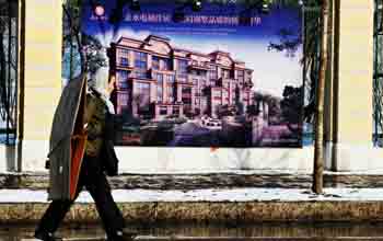 2月19日,一名行人從一樓盤宣傳廣告板前走過。 2月18日,哈爾濱市政府正式下發(fā)《關(guān)于進(jìn)一步做好哈爾濱市房地產(chǎn)市場(chǎng)調(diào)控工作有關(guān)問題的通知》,《通知》規(guī)定,擁有兩套住房的哈爾濱市家庭將不能再買房。新華社記者