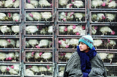 根據(jù)印度24日公布的數(shù)據(jù),2月中旬印度通脹趨勢有所抬頭,今年截至2月12日食品價格指數(shù)上漲11.49%。印度是亞洲通脹最為嚴重的國家之一,外界預(yù)計印度將很快出臺新措施抑制通脹。由于對國內(nèi)加息和通脹的擔(dān)憂加劇,印度股市24日大跌2.78%至18000點以下。圖為一個印度男孩站在待售的禽類前方。