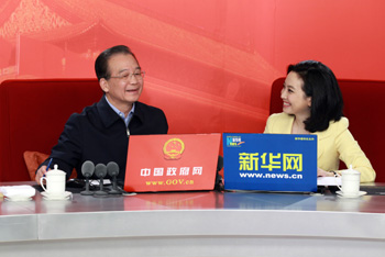 2月27日上午,中共中央政治局常委、國務(wù)院總理溫家寶接受中國政府網(wǎng)、新華網(wǎng)聯(lián)合專訪,與廣大網(wǎng)友在線交流。新華社記者