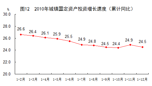 四、固定資產(chǎn)投資 全年全社會固定資產(chǎn)投資278140億元,比上年增長23.8%,扣除價格因素,實際增長19.5%。其中,城鎮(zhèn)投資241415億元,增長24.5%;農(nóng)村投資36725億元,增長19.7%。東部地區(qū)投資[6]115970億元,比上年增長21.4%;中部地區(qū)投資62894億元,增長26.2%;西部地區(qū)投資61875億元,增長24.5%;東北地區(qū)投資30726億元,增長29.5%。