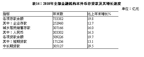 年末全部金融機構(gòu)本外幣各項存款余額73.3萬億元,比年初增加12.1萬億元。其中人民幣各項存款余額71.8萬億元,增加12.0萬億元。全部金融機構(gòu)本外幣各項貸款余額50.9萬億元,增加8.4萬億元。其中人民幣各項貸款余額47.9萬億元,增加7.9萬億元。