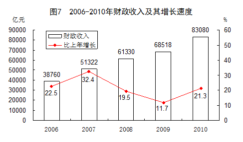 全年財政收入83080億元,比上年增加14562億元,增長21.3%;其中稅收收入73202億元,增加13680億元,增長23.0%。