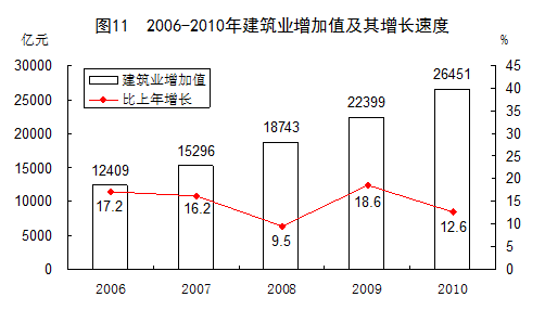 全年全社會建筑業(yè)增加值26451億元,比上年增長12.6%。全國具有資質(zhì)等級的總承包和專業(yè)承包建筑業(yè)企業(yè)實現(xiàn)利潤3422億元,增長25.9%,其中國有及國有控股企業(yè)990億元,增長35.0%。