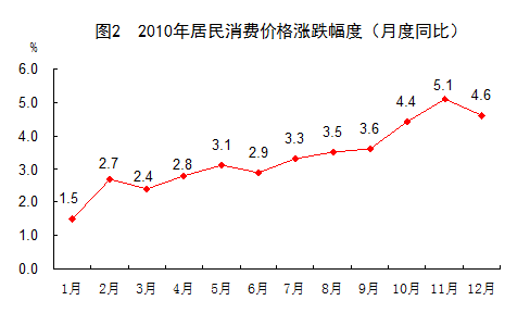 居民消費價格一季度同比上漲2.2%,二季度上漲2.9%,三季度上漲3.5%,四季度上漲4.7%,全年平均比上年上漲3.3%,其中食品價格上漲7.2%。固定資產(chǎn)投資價格上漲3.6%。工業(yè)品出廠價格上漲5.5%。原材料、燃料、動力購進價格上漲9.6%。農(nóng)產(chǎn)品生產(chǎn)價格上漲10.9%。