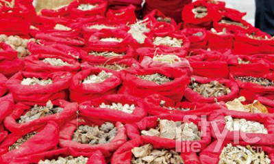 三月街集市上售賣的各種草藥。
