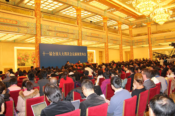 十一屆全國人大四次會(huì)議新聞發(fā)布會(huì)全景,大會(huì)發(fā)言人李肇星就會(huì)議議程和人大工作相關(guān)問題回答中外記者提問