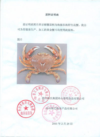 附件二:肯德基黃金蟹斗供應(yīng)商出具的原料證明