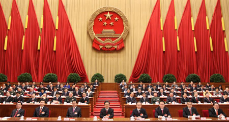 3月14日,第十一屆全國人民代表大會第四次會議在北京人民大會堂閉幕。黨和國家領導人胡錦濤、溫家寶、賈慶林、李長春、習近平、李克強、賀國強、周永康等在主席臺就座。全國人大常委會委員長吳邦國主持閉幕會并發(fā)表講話。 會議批準了政府工作報告、“十二五”規(guī)劃綱要、2011年國民經(jīng)濟和社會發(fā)展計劃、2011年中央預算、全國人大常委會工作報告及其他報告。