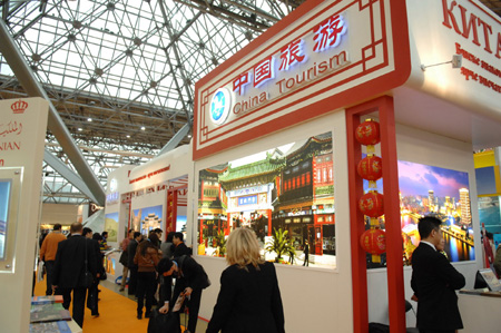 3月16日,人們?cè)诙砹_斯莫斯科會(huì)展中心舉行的國(guó)際旅游展上參觀中國(guó)展臺(tái)。當(dāng)日,為期4天的第18屆國(guó)際旅游展在莫斯科會(huì)展中心正式拉開帷幕。中國(guó)國(guó)家旅游局官員說(shuō),走出金融危機(jī)陰影的中俄旅游合作正呈現(xiàn)快速回升態(tài)勢(shì)。據(jù)中方統(tǒng)計(jì),去年俄來(lái)華旅游人數(shù)增幅在中國(guó)主要客源市場(chǎng)中位居首位。