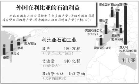 有數(shù)據(jù)顯示,截至2010年10月,在利比亞經(jīng)營的法國公司已經(jīng)由2008年的18家增加到32家,能源是主要的投資領域。美國《時代周刊》網(wǎng)站的報道稱,法國的石油企業(yè)在利比亞擁有數(shù)十億美元的投資。