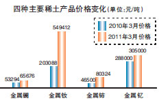 去年全國掀起的一場(chǎng)“稀土風(fēng)暴”令我國稀土長期遭賤賣的局面終有改觀。今年以來,稀土平均價(jià)格已經(jīng)比去年增長了1倍左右,出口價(jià)格更是增長近10倍。據(jù)業(yè)內(nèi)預(yù)計(jì),未來市場(chǎng)行情有望進(jìn)一步推高。 來自上海有色網(wǎng)的數(shù)據(jù)顯示,市場(chǎng)上的主要稀土價(jià)格都已經(jīng)較上年有大幅增長。而記者根據(jù)該網(wǎng)站昨日公布的主要稀土產(chǎn)品的當(dāng)日價(jià)目表進(jìn)行了測(cè)算,結(jié)果顯示,主要稀土產(chǎn)品的平均價(jià)格已經(jīng)達(dá)到15萬美元/噸左右。 國家海關(guān)總署公布的最新統(tǒng)計(jì)數(shù)據(jù)則顯示,在過去幾個(gè)月里,我國稀土出口平均價(jià)格以每月近1萬美元/噸的漲勢(shì)向上攀升,2月單月就上漲了3.4萬美元/噸,均價(jià)突破10萬美元/噸,較去年飆漲9倍多。前兩個(gè)月,我國稀土出口量為7084噸,同比漲幅僅為0.3%,但出口額卻較上年同期增長568%。 中東有石油,中國有稀土。作為全球稀土出口主要國家,我國卻長期遭遇稀土被賤賣和混亂出口的局面。在充分意識(shí)到稀土資源的重要性之后,中國政府采取了一連串措施。去年7月我國對(duì)外宣布將減少稀土出口,當(dāng)時(shí)稀土平均價(jià)格水平還維持在每噸約14405美元;9月,為整合我國稀土資源,國務(wù)院出臺(tái)了《關(guān)于促進(jìn)企業(yè)兼并重組的意見》,稀土行業(yè)名列其中;而當(dāng)年年底為規(guī)范稀土出口,財(cái)政部表示自2011年1月1日起,提高個(gè)別稀土產(chǎn)品的出口關(guān)稅。 業(yè)內(nèi)專家分析說,環(huán)保部發(fā)布的《稀土工業(yè)污染物排放標(biāo)準(zhǔn)》今年10月1日正式實(shí)施后,環(huán)保成本提高將進(jìn)一步推高稀土價(jià)格。中投顧問研究總監(jiān)張硯霖指出,在目前上游原材料供應(yīng)縮緊、價(jià)格持續(xù)堅(jiān)挺的情況下,下游部分冶煉企業(yè)已經(jīng)大量減產(chǎn)。且一旦環(huán)保機(jī)制啟動(dòng),大量作坊式的冶煉企業(yè)將被迫出局,稀土行業(yè)有望得到深度調(diào)整。在雙限的情況下,逐年減少的出口配額將促使生產(chǎn)企業(yè)將更多的力量轉(zhuǎn)向國內(nèi)的推廣應(yīng)用,形成良性的循環(huán)發(fā)展。