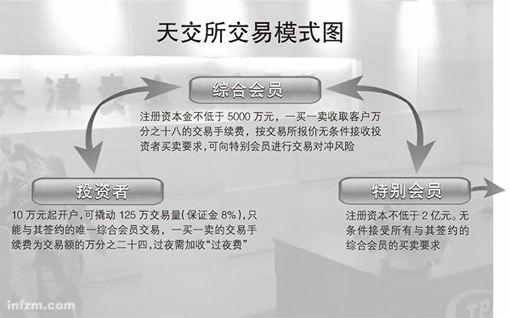 天交所的交易分為兩個層次:客戶與綜合類會員交易,綜合類會員與特別會員交易。