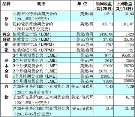 國際大宗商品期貨價(jià)格明細(xì)表[2011-03-21]