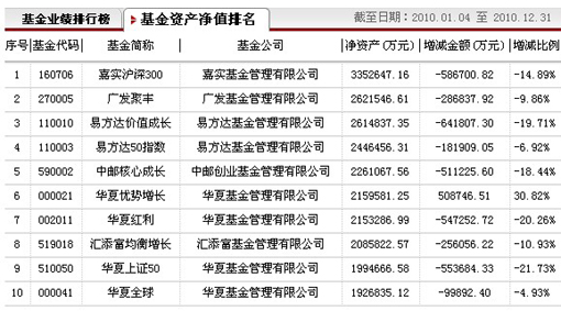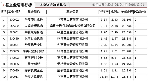 基金排行榜[2010.01.01-2010.12.31]