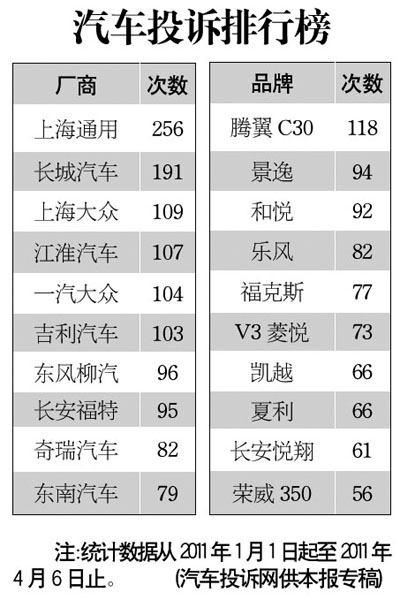 · 汽車投訴排行榜[2011-11-20] 2011-01-20