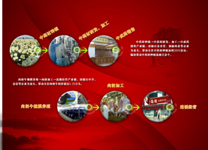 首先,玉米不再賣原糧而是被加工成飼料,實現(xiàn)第一次增值。拿飼料養(yǎng)肉雞、生豬,再次增值;將肉雞、生豬加工變成生熟肉制品,第三次增值。這是第一輪。