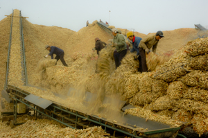 2003年5月,全國面粉行業(yè)的巨頭華龍公司投資5000萬元興建的面粉廠在伏道鄉(xiāng)開工,當(dāng)年10月投產(chǎn),年加工優(yōu)質(zhì)小麥20萬噸,本地小麥隨到隨收,而且每公斤的價格比周邊地區(qū)要高。僅此一項,農(nóng)民一畝地就能增收二三十元。企業(yè)附近的伏道、白營等幾個鄉(xiāng)鎮(zhèn)還和企業(yè)簽訂了20萬畝的小麥訂單,糧食沒下種就找到了“婆家”。這一筆合同簽下來,幾近全縣小麥產(chǎn)量的一半。企業(yè)生產(chǎn)的下腳料也被附近農(nóng)民悉數(shù)拉走,做起了飼料加工的生意。同時,100多名“泥腿子”進(jìn)廠成了上班族。世界500強(qiáng)企業(yè)新加坡益海嘉里集團(tuán)在湯陰投資6000萬美元建成的項目,每天加工轉(zhuǎn)化小麥1200噸,每年要吃掉90萬畝小麥的產(chǎn)量,年銷售收入達(dá)6億元。公司項目經(jīng)理楊進(jìn)東口氣很大:“湯陰及周邊縣的小麥我們都包了。”