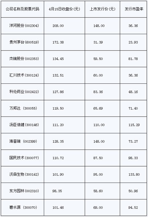 我們發(fā)現(xiàn),以截止到4月19日收盤價超出一百元的11只股票為例,部分百元股如海普瑞、國民技術(shù)、沃森生物、碧水源等自發(fā)行以來就已經(jīng)連續(xù)陷入調(diào)整態(tài)勢,股價不能得到有力的支撐。高成長性不能得到延續(xù),股價未見起色,這里有公司經(jīng)營層面的問題,也有市場投資者認可的問題,還有新股發(fā)行機制存在的問題。