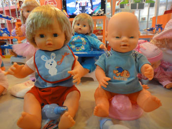 “哇,好萌啊!”在驊威公司的展廳里,一個來參觀的女孩被模樣超級可愛的娃娃們吸引住了。“這些娃娃,可不單是可愛哦。他們都是智能娃娃,可以溜冰吹泡泡,會拉屎撒尿!痹O(shè)計師劉元學(xué)現(xiàn)場為參觀者演示了一個會“發(fā)燒”的娃娃。只見這個娃娃“發(fā)燒”之后,滿臉通紅,給它喂各種藥還不夠,仍哭鬧不停,只好給它“打針”“打針”之后,退燒了,它的臉色才恢復(fù)了正常。