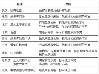 存在價(jià)格欺詐行為商貿(mào)企業(yè)一覽: