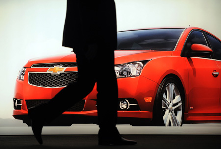 這是在美國洛杉磯國際車展上拍攝的雪佛蘭克魯茲汽車的資料照片(2010年11月18日攝)。