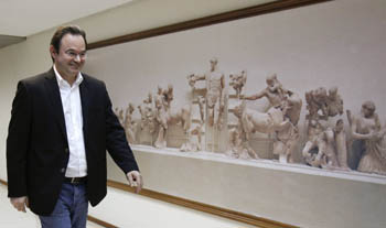 希臘財(cái)長帕帕康斯坦丁努出席了7日舉行的歐元區(qū)財(cái)長會(huì)議。此次會(huì)議未討論債務(wù)重組問題,但明確了希臘需要進(jìn)一步的調(diào)整計(jì)劃來度過債務(wù)危機(jī)!(路透社) |