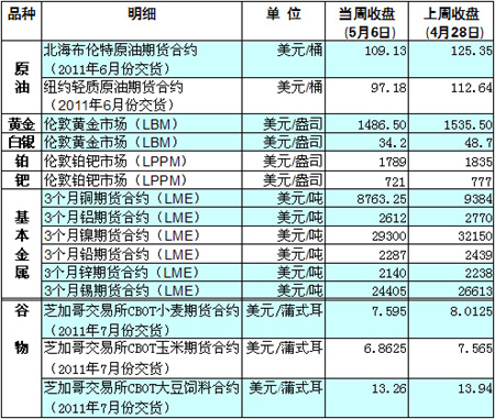 國際大宗商品期貨價格明細表[2011-05-09]