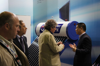 華揚(yáng)技術(shù)人員向外商介紹太陽能產(chǎn)品。記者 王星橋