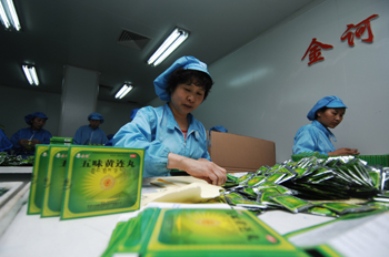 圖為青海金訶藏藥集團(tuán)的工人在對藥品進(jìn)行包裝。新華社記者 吳光于/攝 |
