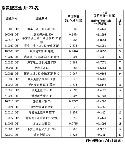 本周最差收益指數型基金排名(3月17日-23日)