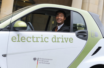 5月16日,德國新經(jīng)濟部長勒斯勒爾在柏林試駕一輛電動車。 德國總理默克爾當(dāng)日宣布,為了讓德國在未來電動汽車市場能居主導(dǎo)地位,政府未來幾年內(nèi)將通過加倍投入研發(fā)資金、稅務(wù)優(yōu)惠和給使用電動汽車提供“特權(quán)”便利三管齊下的措施,助推德國的電動汽車發(fā)展計劃。
