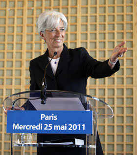 2011年5月25日,法國財政部長拉加德在法國首都巴黎舉行的新聞發(fā)布會上講話。