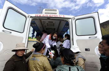 近年來,西藏衛(wèi)生事業(yè)發(fā)展迅速,廣大農(nóng)牧民身體健康水平和農(nóng)牧民醫(yī)療保健水平有了明顯的提高。圖為西藏林芝地區(qū)林芝縣八一鎮(zhèn)醫(yī)療衛(wèi)生院的巡回醫(yī)療車開進(jìn)巴吉村,醫(yī)務(wù)人員在被稱作“農(nóng)村流動(dòng)醫(yī)院”的醫(yī)療車?yán)餅樵摯宓娜罕娍床,并免費(fèi)發(fā)放急需藥品。記者