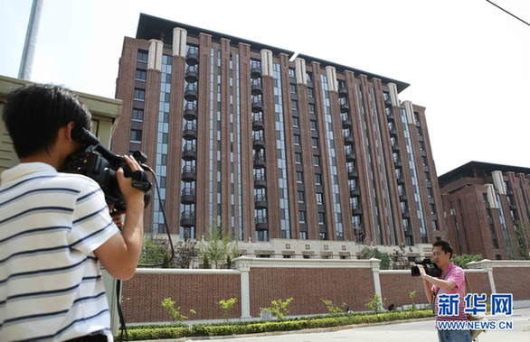 2011年5月25日北京出現(xiàn)單價30萬樓盤5月25日,媒體記者在北京東釣魚臺家園小區(qū)門前拍攝采訪。分析人士指出,在嚴厲調(diào)控之下,北京豪宅價格逆勢異常高漲,十分值得關(guān)注。新華社發(fā)(李方宇