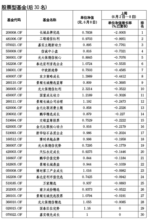 長城基金管理有限公司旗下,2007年8月成立的長城品牌優(yōu)選以-2.0%的凈值增長率成為本周(6月2日-8日)股票型基金收益倒數(shù)第一,其今年年漲幅為0.56%。
