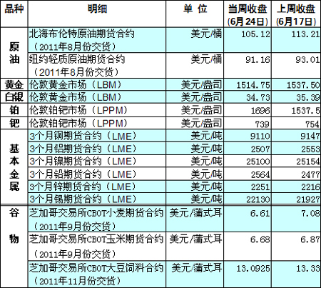 國際大宗商品期貨價格明細(xì)表[2011-06-27]