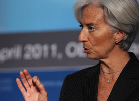 國際貨幣基金組織6月28日宣布,法國經(jīng)濟(jì)、財(cái)政與工業(yè)部部長克里斯蒂娜·拉加德被選為該組織新一任總裁,成為該組織自1944年成立以來首位女性總裁。 這是拉加德在法國巴黎舉行的國際經(jīng)合組織一次論壇會(huì)議上講話的資料照片(4月28日攝)。