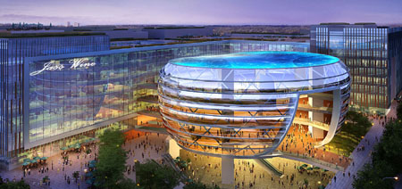 投資超過(guò)31億元人民幣、緊鄰京滬高鐵上海站的上海“虹橋天地”項(xiàng)目詳細(xì)設(shè)計(jì)方案發(fā)布。由香港瑞安房地產(chǎn)有限公司投資的“虹橋天地”項(xiàng)目,位于上海虹橋商務(wù)區(qū)6號(hào)地塊,占地面積約6.2萬(wàn)平方米,建筑總面積達(dá)38萬(wàn)平方米。該項(xiàng)目將于年內(nèi)開(kāi)工,預(yù)計(jì)于2013年竣工。圖為上!昂鐦蛱斓亍表(xiàng)目夜間景觀(guān)效果圖。