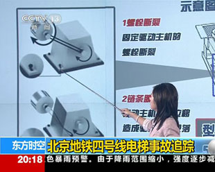 7月5日早晨,在北京地鐵四號線動物園站,因上行電梯突然發(fā)生設(shè)備故障而逆行,正在搭乘電梯的部分乘客出現(xiàn)摔倒情況,造成1人死亡、30人受傷。北京市質(zhì)監(jiān)局公布了初步調(diào)查結(jié)果,事故的直接原因是“由于固定零件損壞,扶梯驅(qū)動主機發(fā)生位移,造成驅(qū)動鏈條脫落,扶梯下滑”。 | | |