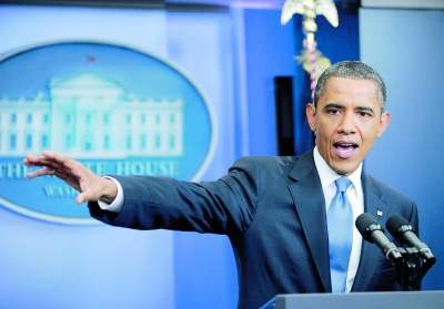 圖為7月11日奧巴馬在白宮舉行記者會。