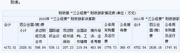 財政部2010年財政撥款開支的“三公經(jīng)費”支出決算和2011年預(yù)算情況