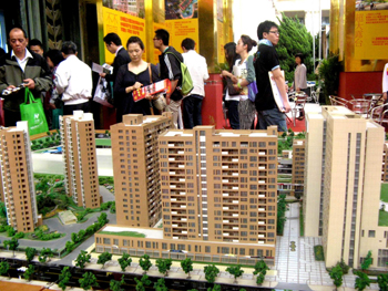 市民在上海房展會(huì)上觀看樓盤模型(2011年4月30日攝)。國(guó)務(wù)院總理溫家寶日前主持召開(kāi)國(guó)務(wù)院常務(wù)會(huì)議,分析當(dāng)前房地產(chǎn)市場(chǎng)形勢(shì),指出要嚴(yán)格實(shí)施差別化住房信貸、稅收政策和住房限購(gòu)措施,遏制投機(jī)投資性購(gòu)房,合理引導(dǎo)住房需求。已實(shí)施住房限購(gòu)措施的城市要繼續(xù)嚴(yán)格執(zhí)行相關(guān)政策,房?jī)r(jià)上漲過(guò)快的二三線城市也要采取必要的限購(gòu)措施。新華社發(fā) |