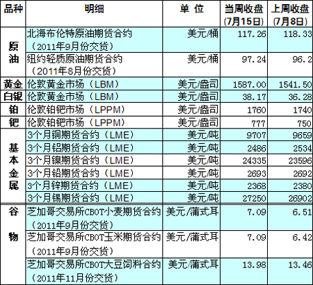 國(guó)際大宗商品期貨價(jià)格明細(xì)表[2011-07-18]